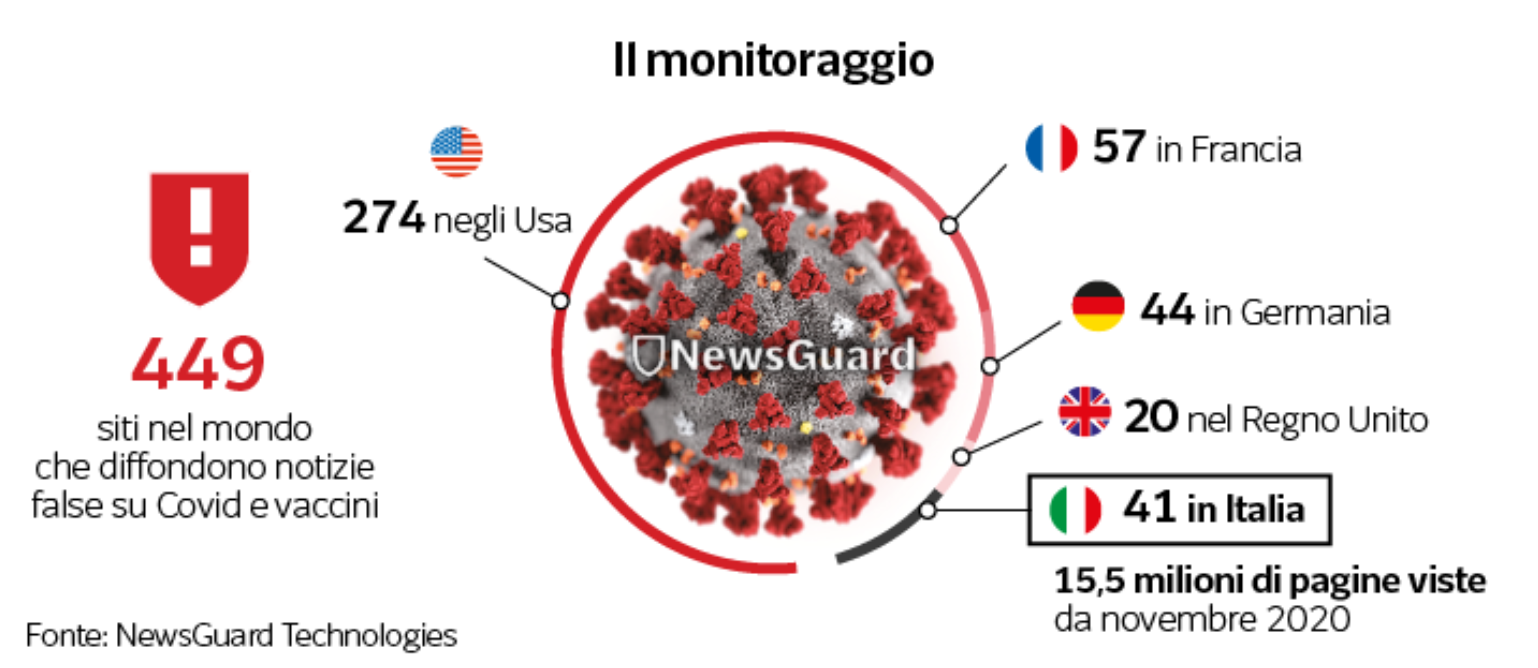 Il CoViD-19 è attualmente la terza causa di morte negli Stati Uniti e le persone non vaccinate continuano a morire in gran numero. L’esitazione e il rifiuto del vaccino sono alimentati dalla disinformazione COVID-19 sulle piattaforme dei social media. Riguardo a ciò si stima ci siano 449 siti nel mondo che diffondono notizie false, di cui 274 negli USA, 57 in Francia, 44 in Germania, 20 nel Regno Unito e 41 in Italia.